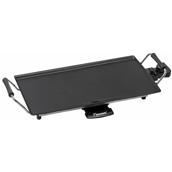 Die Bestron ABP602 Plancha Grillplatte ist eine hochwertige Backplatte mit Antihaftbeschichtung (Größe 47 x 26cm) und eignet sich ideal für z.B. Fleisch, Fisch, Gemüse und Kartoffeln. Der abnehmbare einstellbare Temperaturschalter besitzt eine Kontrollleuchte. Zum Betrieb ist kein Öl oder Fett notwendig, die Auffang-Rinne und -schale nimmt überschüssiges Fett oder Grillrückstände auf. Die ABP602 Plancha Grillplatte ist leicht zu reinigen und kann im Innenbereich und im Freien verwendet werden.Art.-Nr.: 1432123