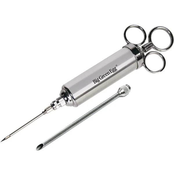 Der Aroma-Injektor (Chef’s Flavor Injector) von Big Green Egg gibt Fleisch und Geflügel auf einzigartige Weise noch mehr Geschmack. Mit der Marinierspritze dringen Marinaden, Rubs oder Öl bis in den Kern des Fleisches vor, so dass es noch saftiger und zarter wird. Der Aroma-Injektor ist einfach in der Handhabung. Die beiden 6,5cm langen Doppelnadeln lassen sich abschrauben und gut reinigen.Art.-Nr.: 1598071