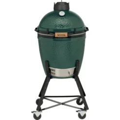 Das Big Green Egg Medium ist kompakt genug für kleine Stadtgärten, Terrassen oder Balkone, aber auch groß genug zum Grillen, Räuchern, Garen oder Backen von leckeren Gerichten für sechs bis acht Personen. Mit dem Medium im Garten kann man sich regelmäßig Freunde und Familie einladen, damit man in geselliger Runde genießen kann. Nicht zuletzt deshalb gehört dieses EGG zu den beliebtesten Modellen. Mit dem passenden convEGGtor und dem Back- und Pizzastein (nicht im Lieferumfang enthalten) verwandelt man das Big Green Egg Medium im Handumdrehen in einen Pizzaofen, der die Gäste mit den leckersten, hausgemachten Pizzen verwöhnen wird. Dieses EGG heißt zwar Medium, aber es ist alles andere als mittelmäßig. Das Geheimnis des Eggs besteht in der Kombination mehrerer Elemente. Die Keramik reflektiert die Hitze, so dass ein Luftstrom entsteht, der die Zutaten und Gerichte noch zarter macht. Die perfekte Luftzirkulation lässt die Zutaten auf der gewünschten Temperatur gleichmäßig garen. Die Temperatur lässt sich ganz genau regulieren und halten. Dank der hochwertigen, wärmeisolierenden Keramik haben auch die Außentemperaturen keinen Einfluss auf die Temperatur im Egg. Die Keramik ist außen mit einer doppelten Schutzglasur beschichtet. Da das Big Green Egg einen Temperaturbereich von 70°C bis 350°C hat, ist es für eine Vielzahl von Kochtechniken geeignet: zum Grillen, Backen, Kochen, Garen, Räuchern und für Slow Cooking. Im Medium Starter-Paket sind unter anderem das praktische EGG Nest und der convEGGtor enthalten. Durch den Einsatz des keramischen convEGGtors verwandelt man das Big Green Egg ganz einfach in einen Ofen. Der convEGGtor fungiert als Hitzeschild, das dafür sorgt, dass die Lebensmittel nicht der direkten Hitze der Holzkohle ausgesetzt sind. Das ermöglicht einen langsamen Garprozess.Art.-Nr.: 1595929