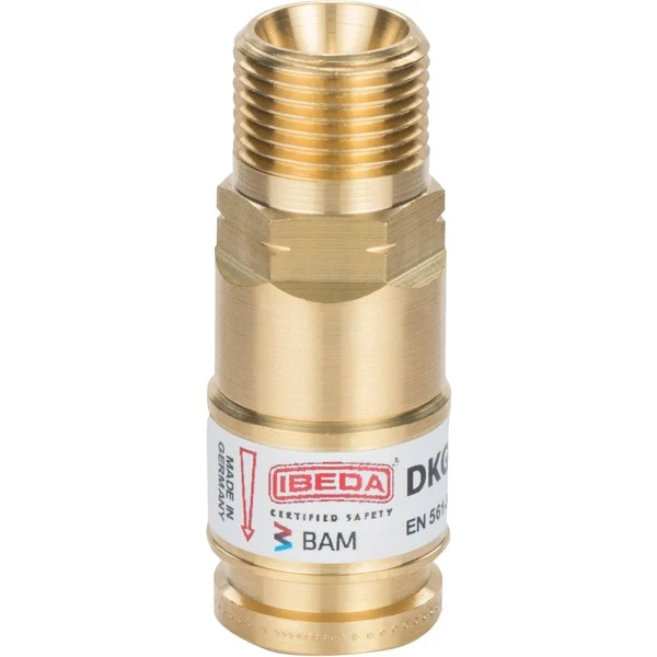 Die Schlauchkupplung DKG von IBEDA wird nach den Normen EN 561, ISO 7289 gefertigt. Sie stoppt den Gasfluss beim Auskuppeln durch eine selbsttätige Gassperre (SV) und verhindert ein versehentliches Trennen der Kupplungsverbindung. Der dazu passende codierte Kupplungsstift verhindert die Verwechslung der Gasanschlüsse. Alle metallischen Bauteile sind aus Messing. Das Push-System funktioniert ganz einfach. Einkuppeln: die Schiebehülse festhalten und den Kupplungsstift unter Druck hineinstecken, bis die Verriegelung einrastet. Auskuppeln: die Schiebehülse nach vorne schieben und den Kupplungsstift aus dem Kupplungskörper herausziehen.Art.-Nr.: 1669851
