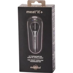 Der Meat it Plus von Mastrad ist ein bluetooth fähiges, kabelloses Fleischthermometer mit dem sich Grillgerichte aus der Ferne vollständig kabellos überwachen lassen. Dank der patentierten Technologie misst Meat it die Innentemperatur, die App berechnet Gardauer und Wärmestärke und warnt, wenn das Fleisch verkocht, verbrennt oder wenn die Heizquelle abkühlt. Die Sonde widersteht es extremen Temperaturen von -30°C bis 300°C und bis zu 3 min resistent gegen direkte Flammen (bis zu 3 min – 600°C). Es hat einen Temperaturbereich von 0°C bis 100°C, der perfekt Für den Gebrauch in Smokern ist. Mit dem Mastrad Meat it Plus kann jedes Fleisch bei der perfekten Temperatur gegart werden. Zudem lassen sich bis zu 4 Sonden gleichzeitig anschließen. Die Sonde verfügt über eine integrierten Akku mit bis zu 24 Stunden Laufzeit.