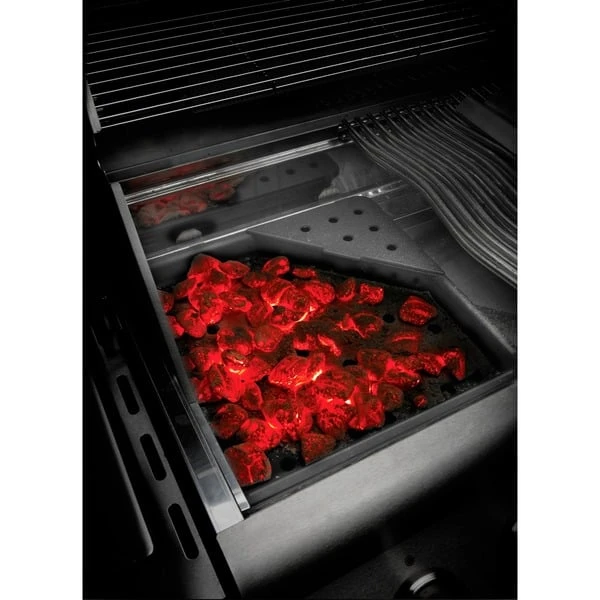Der Napoleon Gusseisen Holzkohleeinsatz & Räuchervorrichtung 67732 ermöglicht Holzkohlegrillen und Räuchern am Gasgrill und vereint damit die besten Seiten beider Grilltechnologien. Man entfernt einfach einen Grillrost und platziert den Holzkohleeinsatz über den Brennern. Dann streut man die Räucherspäne ein und schüttet die Holzkohlen vorsichtig in die entsprechende Wanne am Holzkohleeinsatz. Nun kann der Grillrost wieder eingesetzt und der Holzkohleeinsatz wie gewohnt mit dem Gasbrenner befeuert werden. So kann man das unvergessliche Räucheraroma genießen.Art.-Nr.: 1404832