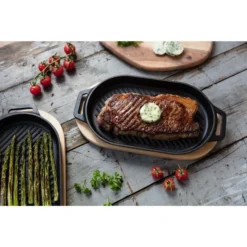 | Bestehend aus | Grillpfanne, Gusseisen-Griff (abnehmbar), Holz-Untersetzer | ||