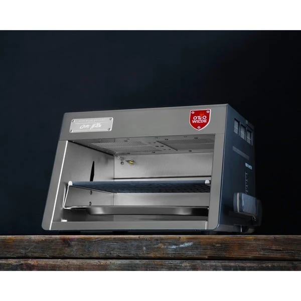 O.F.B. wurde von Otto Wilde Grillers entwickelt, weil eine knackige Kruste und saftiges Fleisch kein Zufall sind, sondern das Ergebnis extremer Grilltemperatur von bis zu 900°C. Bei herkömmlichen Grills kann das Steak eine flaue Kruste und einen trockenen Kern haben, wegen niedriger Grilltemperaturen und einer zu langen Grilldauer. Der O.F.B. Premium verfĂĽgt ĂĽber zwei Brenner, die in nur 3 Minuten bis zu 900°C erreichen, das verleiht den Steaks eine perfekte Kruste, während das Fleisch innen zart und saftig bleibt. Durch die hohen Temperaturen kommt es zur sogenannten Maillard-Reaktion. Sie ist fĂĽr die schöne Kruste und den Grillgeschmack verantwortlich. Die Röststoffe verleihen dem Grillgut das typische „Brutzelaroma“ und intensivieren den Fleischgeschmack. Bei herkömmlichen Grills tropfen Fett und Fleischsäfte auĂźerdem in die Hitzequelle, was Flammen und Fettbrände verursacht und die die gleichmäßige Hitzeverteilung stört. Verkohlte oder ungleichmäßig gegarte Speisen können die Folge sein. Durch die Oberhitze bei O.F.B. entsteht eine gleichmäßige Kruste, und das Fett tropft in die Auffangschale darunter. Der eingebaute Grillrostauszug des O.F.B. Premium macht die Bedienung noch einfacher und verhindert Fetttropfen auf dem Tisch. Die zwei Infrarot-Brenner sind stufenlos und individuell regelbar. Die offene Front ermöglicht nicht nur einen einfachen Zugang zum Grillgut, man kann auch die Steaks immer im Blick behalten. Wenn man mit 900 Grad grillt, muss das Einstellen der Rosthöhe zuverlässig funktionieren. Mit dem seitlichen Hebel ist die stufenlose Höhenverstellung des Rostes kinderleicht und durch den verstellbaren Widerstand auch besonders sanft und sicher. Der speziell fĂĽr den Otto Wilde Grillers O.F.B. entwickelte Gusseisen-Grillrost speichert die Hitze optimal, erfordert nur minimalen Pflegeaufwand und ist groĂź genug, um selbst die größten Porterhouse-Steaks zu grillen. Ob Picknick oder Camping-Urlaub, O.F.B. Premium lässt sich durch seine Kompaktheit auĂźerdem ĂĽberall hin mitnehmen.Art.-Nr.: 1629763