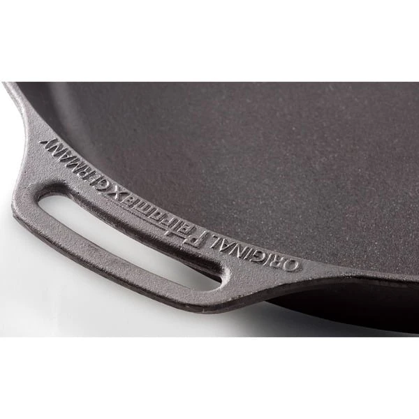 Die gusseiserne Petromax Feuerpfanne fp40 gehört mit ihrer exzellenten Wärmespeicherung zur Ausstattung jeder Küche. Ob in der Draußen-Küche über dem offenen Feuer gekocht wird oder auf dem Herd zuhause, man kann die Feuerpfanne sowohl auf herkömmlichen Herdplatten, auf Gasflammen, im Backofen als auch im Freien auf einer Kochstelle, über einem Lagerfeuer oder auf einem passenden Grill verwenden. Das Gusseisen mit seiner ausgezeichneten Wärmeverteilung und -speicherung ist dank der vorbehandelten Oberfläche (seasoned finish) sofort einsatzbereit und leicht zu pflegen.Art.-Nr.: 1532883