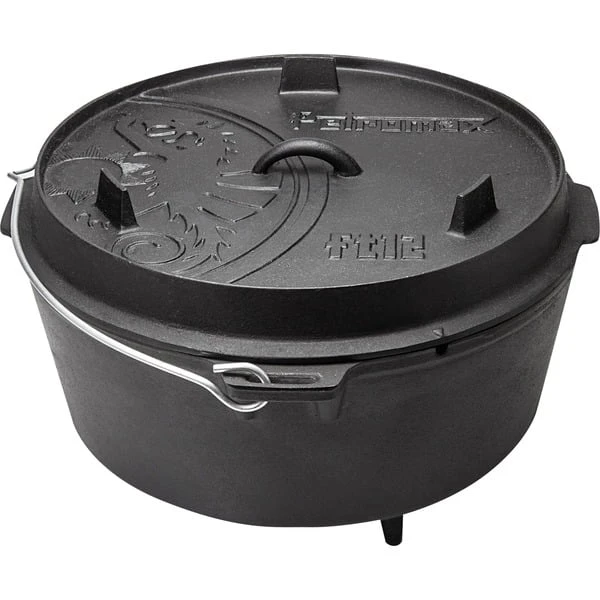 Der Feuertopf ft12 von Petromax eignet sich für 14 – 20 Personen. Die Petromax Feuertöpfe, auch als Dutch Oven bezeichnet, sind ideale Begleiter für Draußen-Aktivitäten wie Reisen, Camping, etc. Mit ihnen garen Speisen, wie z.B. Fleisch und Gemüse, sehr schonend im eigenen Saft über offenem Feuer oder im heimischen Backofen. Der einzigartige Geschmack entsteht durch die konstante Rundumwärme im Topf. Die Deckel der Feuertöpfe können zudem auf Wunsch als Servierplatte oder Pfanne genutzt werden. Dank der vorbehandelten Oberfläche (seasoned finished) ist der robuste Petromax Feuertopf aus Gusseisen sofort verwendbar. Mit den Petromax Feuertöpfen kann man draußen leckeres und gesundes Essen für Familie und Freunde zubereiten.Art.-Nr.: 1532710