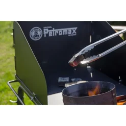 Der Petromax Feuertopf Tisch fe45 ermöglicht Draußen-Kochen im großen Stil. Er bietet eine sichere Stand- und Kochfläche für Feuertöpfe in angenehmer Arbeitshöhe von 87cm. Auf dem belastbaren Stahltisch finden je nach Größe mehrere Feuertöpfe oder Grillroste Platz. Der großzügig bemessene Windschutz ermöglicht auch im Freien energie- und kohleeffizient zu kochen. Die vier Standbeine können alternativ auch abgebaut und der Tisch auf eine beliebige, hitzeresistente Unterlage gestellt werden. Vorn und an den Seiten bieten Bügel Platz zum Aufhängen von Kohlezange, Grillhandschuhen und Co. Zum Säubern lassen sich Asche und Kohlereste einfach durch eine Aussparung im vorderen Bereich der Arbeitsfläche ausfegen.Art.-Nr.: 1533663