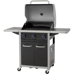Der Gasgrill Northport 3 von Tepro ist in einen stabilen Grillwagen integriert und mit vier Lenkrollen ausgestattet. Die geteilte Grillfläche aus Gusseisen verfügt über einen herausnehmbaren Grillrosteinsatz für das tepro Rost in Rost System und einen zusätzlichen emaillierten Warmhalterost. Im Deckel mit Edelstahl-Griff ist ein Thermometer integriert, um jederzeit die Temperatur überprüfen zu können. Der Gasgrill Northport 3 bietet außerdem zwei abklappbare Seitenablagen, Drehregler mit LED Beleuchtung und eine in die Regler integrierte Piezo-Zündung. Heruntergetropftes Fett lässt sich nach dem Grillen dank der Fettauffangschublade mit Griff auf der Rückseite leicht entnehmen und entsorgen. Im geräumigen Unterschrank befindet sich hinter den beiden Türen noch zusätzlicher Stauraum und eine Gasflaschenhalterung für 5kg-, 8kg- und 11kg-Gasflaschen. Art.-Nr.: 1676265