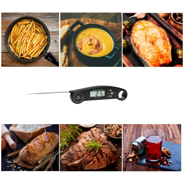 Das handliche digitale Küchen-Thermometer 30.1061 zum Einklappen von TFA Dostmann eignet sich ideal für die unkomplizierte Temperaturmessung von Speisen und Getränken. Ob als Fleischthermometer, um die Kerntemperatur beim Grillen oder Braten zu ermitteln, zum sicheren Temperatur-Check von Babynahrung, für die temperaturgenaue Zubereitung von Leckereien aus Zucker und Schokolade, beim Einkochen von Marmelade oder um die Trinktemperatur von Wein und Getränken zu überprüfen, der praktische Klappmechanismus macht es einfach zu bedienen. Temperaturen von Nahrungsmitteln jeder Art können mit dem handlichen Thermometer schnell, exakt und mühelos gemessen werden. Den Fühler ausklappen, einstechen / eintauchen und in maximal 4 Sekunden liefert das Gerät die genaue Temperatur. Nach Gebrauch einfach unter fließendendem Wasser oder mit einem feuchten Tuch reinigen und wieder zuklappen, schon ist es ausgeschaltet und wartet gut verstaut in der Hosentasche auf den nächsten Einsatz. Durch die integrierte Magnethalterung haftet es auch sicher auf metallischen Oberflächen. Und ist beim Grillabend mal kein Flaschenöffner zur Hand, auch dafür kann man das praktische Küchen-Thermometer verwenden.Art.-Nr.: 1914081