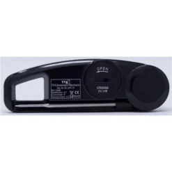 Dieses handliche Klappthermometer von TFA eignet sich ideal für die unkomplizierte Temperaturmessung im Haushalt. Die Kontrolle der Kerntemperatur beim Grillen oder Braten, der sichere Temperatur-Check von Babynahrung oder Badewasser, die temperaturgenaue Zubereitung von Leckereien aus Zucker und Schokolade, das Einkochen von Marmelade und die Überprüfung der Trinktemperatur von Wein und Getränken, das ist der Einsatzbereich von Thermo Jack. Vor allem Nahrungsmittel jeglicher Art können mit dem handlichen Thermometer schnell, exakt und mühelos gemessen werden. Der praktische Klappmechanismus macht es einfach zu bedienen. Den Fühler ausklappen, einstechen und binnen kürzester Zeit liefert das Gerät die exakte Temperatur. Nach Gebrauch einfach wieder zuklappen, schon ist es ausgeschaltet und wartet gut verstaut in der Hosentasche auf den nächsten Einsatz. Dank seiner speziell geformten Messspitze misst das Thermo Jack die Temperatur präzise in nur 7 Sekunden. Das Gerät ist strahlwassergeschützt und kann nach Gebrauch unter fließendem Wasser gereinigt werden.