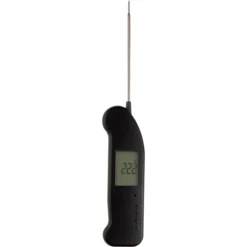 Das Thermapen Superfast ONE Thermometer ist ein handliches und zuverlässiges Tool mit innovativen Funktionen, das Steaks, Hähnchen oder andere Lebensmittel auf den Punkt genau gart. Es misst in Sekundenschnelle die Kerntemperatur der Lebensmittel. Die Mikro-Element-Sonderspitze sorgt dabei für höchste Genauigkeit. Der Messbereich reicht von -49,9°C bis zu + 299,9°C. Die Anzeige im Display rotiert um 360°, so kann man die Temperatur in jeder Position leicht ablesen. Das intelligente Display mit Hintergrundbeleuchtung misst das Licht und schaltet sich bei unterschiedlichen Lichtverhältnissen automatisch ein und wieder aus. Das Thermapen ONE ist über Tasten im Batteriefach vollständig konfigurierbar. Hier kann man die Anzeigeposition sperren, die Abschaltautomatik deaktivieren, °C- oder °F-Skalen und eine Auflösung von 1° oder 0,1° auswählen. Der Schlafmodus mit Bewegungssensor und vom Benutzer änderbarer Zeitverzögerung schaltet das Thermapen ONE automatisch ein / aus, wenn es abgelegt oder aufgenommen wird. Mit der einklappbaren Sonde lässt sich das Thermometer in der Hosentasche verstauen und man hat es immer bei der Hand. Das wasserdichte Gehäuse ist abwaschbar und besitzt eine Biomaster-Beschichtung, die das Bakterienwachstum reduziert. Eine Gummiabdichtung minimiert das Eindringen von Flüssigkeiten oder Schmutz.Art.-Nr.: 1895453