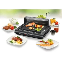 Der Standgrill Unold 58565 bietet nicht nur viel Leistung sondern auch viel Platz. Eine antihaft-beschichtete Druckgussaluminium Grillplatte und eine stufenlose Temperaturregelung sorgen für optimale Grillergebnisse bei 1.600 Watt Leistung. Ein stabiler Tisch mit großer Arbeitsfläche, zwei seitlich einsteckbare Ablageflächen und ein Ablagegitter bieten Platz um Grillgut vorzubereiten oder um Grillzubehör übersichtlich abzulegen. In puncto Sicherheit glänzt der 58565 mit einem Überhitzungsschutz und einsteckbarem Windschutz.Art.-Nr.: 855518