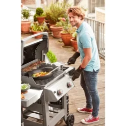 Der Weber Gasgrill Spirit II E-210 GBS bietet optimales Grillaroma durch die einzigartigen Flavorizer Bars Aromaschienen. Dieser Grill mit zwei Brennern aus Edelstahl ist auch für kleinere Stellflächen geeignet und komplett ausgestattet mit Funktionen wie dem Hochleistungsgrillsystem GS4, iGrill 3-Kompatibilität und praktischen Seitentischen als Ablagefläche. Der Warmhalterost vergrößert die Nutzfläche und die 2 Brenner sind stufenlos regelbar. Eine Elektrische Zündung macht das Starten sicher und komfortabel und mit dem Crossover Zündsystem lässt sich der zweite Brenner ohne erneutes Zünden zuschalten. Das Gourmet BBQ System bietet mit seinen zahlreichen optional erhältlichen Grilleinsätzen wie z.B. dem Grillrost zum scharfen Anbraten, dem Pizzastein oder dem Wok ungeahnte Möglichkeiten. Art.-Nr.: 1441414