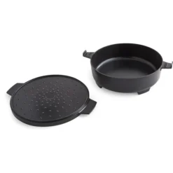 Der Gourmet BBQ System 88577 2in1 Dutch Oven & Pfanne Einsatz ist ein äußerst vielseitig einsetzbarer gusseiserner Topf. Der Mehrzweckbräter bietet unbegrenzte Möglichkeiten auf dem Grill. Der Dutch Oven sorgt für eine gleichmäßige Wärmeverteilung und Wärmespeicherung, das ist perfekt für zarte Braten oder aromatische Suppen und Eintöpfe. Ob Erbseneintopf, Chili con Carne, Aufläufe oder sogar Brot backen, mit dem Dutch Oven kann man viel mehr als nur Schmorgerichte zubereiten. Zum Beispiel gelingen auch Dampfnudeln im Dutch Oven wunderbar auf dem Grill. Das Gusseisen gibt die aufgenommene Wärme von Kohle oder Gas gleichmäßig ab und ermöglicht es, mit dem 6,8 Liter fassenden Topf auch zu backen. Der Deckel schließt die Feuchtigkeit ein und lässt sich separat auch als flache Grillplatte zum Toasten von Sandwiches oder zum Grillen von Hühnerbrust und Gemüse verwenden. Die porzellanemaillierte Oberfläche lässt sich leicht reinigen, und die beiden Teile sind für eine platzsparende Aufbewahrung stapelbar.Art.-Nr.: 1694230