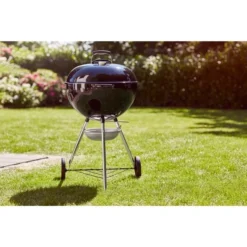 Der Kugelgrill Weber Original Kettle E-5710 mit traditioneller Weber Silhouette hat einen Asche-Auffangbehälter und integrierte Besteckhalter. Er eignet sich für das direkte und indirekte Grillvergnügen. Mit seiner einfachen Handhabung und Pflege, seinen Sicherheits- sowie Ausstattungsmerkmalen lässt der One-Touch Original Kettle keine Wünsche mehr offen. Das One-Touch-System ermöglicht in Verbindung mit dem Lüftungsschieber im Deckel eine sehr gute Temperatur- und Umluftsteuerung im Kessel, die das lästige Verstellen des Grillrostes in der Höhe vollkommen überflüssig macht.Art.-Nr.: 1500301