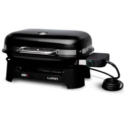 Der Elektrogrill Lumin Compact „Black“ von Weber bringt mit hoher Hitze und groĂźer Vielseitigkeit das urbane Grillen im Freien auf ein neues Niveau. Der multifunktionale Elektrogrill erreicht mit 2.200 Watt Temperaturen ĂĽber 315°C fĂĽr scharfes Anbraten und köstliche Grillmuster, während die Räucherfunktion den Grillgeschmack weiter verstärkt. Mit den verschiedenen Grilloptionen kann man gefrorenes Grillgut auftauen, Steaks scharf anbraten, SpieĂźe räuchern, GemĂĽse dämpfen oder Beilagen kochen. AnschlieĂźend hält der Lumin Compact die Speisen bis zum Servieren warm und bietet bei geöffnetem Deckel ein BĂĽfett zur Selbstbedienung. Der intuitiv markierte Bedienknopf macht die Auswahl der Grill-, Dampf-, Räucher- und Aufwärmfunktionen kinderleicht. Das emaillierte Stahlgehäuse und die von vorne zugängliche Fettauffangschale lassen sich nach dem Grillen problemlos reinigen. Der moderne, praktische Lumin Compact mit seinem schwarzen porzellanemailliertem Gehäuse ist ein Hingucker auf jedem Balkon oder Terrasse. Mit seinem besonders kompakten und platzsparenden Design ist der Weber Lumin Compact auĂźerdem ganz leicht zu verstauen und fĂĽr die nächste Grillparty im Handumdrehen wieder aufgestellt.Art.-Nr.: 1875475