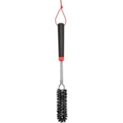 Die schmale Grillbürste 6279 von Weber kommt in alle Rostzwischenräume und an schwer zugänglicher Flächen an den Kanten der Grillfläche. Die langlebigen Edelstahlborsten greifen dabei die Porzellanemaillierung nicht an. Das Aufhängeband und der untere Griffabschluss setzen farbige Akzente.Art.-Nr.: 1694214