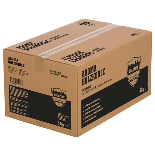 Die rauchfreie Holzkohle Wildfire eignet sich durch ihr natürliches Kräuteraroma optimal zum Grillen und aromatisieren von Fleischgerichten auf dem Grill. Sie ist nachhaltig, innovativ und sparsam im Verbrauch. Dank der hohen Energieeffizienz verursacht sie kaum Holzkohlestaub in und rund um den Grill. Sei enthält große Kohlestücke mit der stets gleichen hohen Qualität. Dank der großen Körnung ist sie auch perfekt für den Einsatz in der Gastronomie geeignet. Im Keramikgrill liegt die Brenn- und Grilldauer bei mindestens 24 Stunden, ideal z.B. für Pulled Pork, denn 12 Stunden Garzeit sind kein Problem. Zum schnellen Grillen im offenen Grill eignet sie sich ebenfalls, mit einer Brenndauer von ca. 4 Stunden und einer Grilldauer von ca. 3 Stunden.Art.-Nr.: 1675733